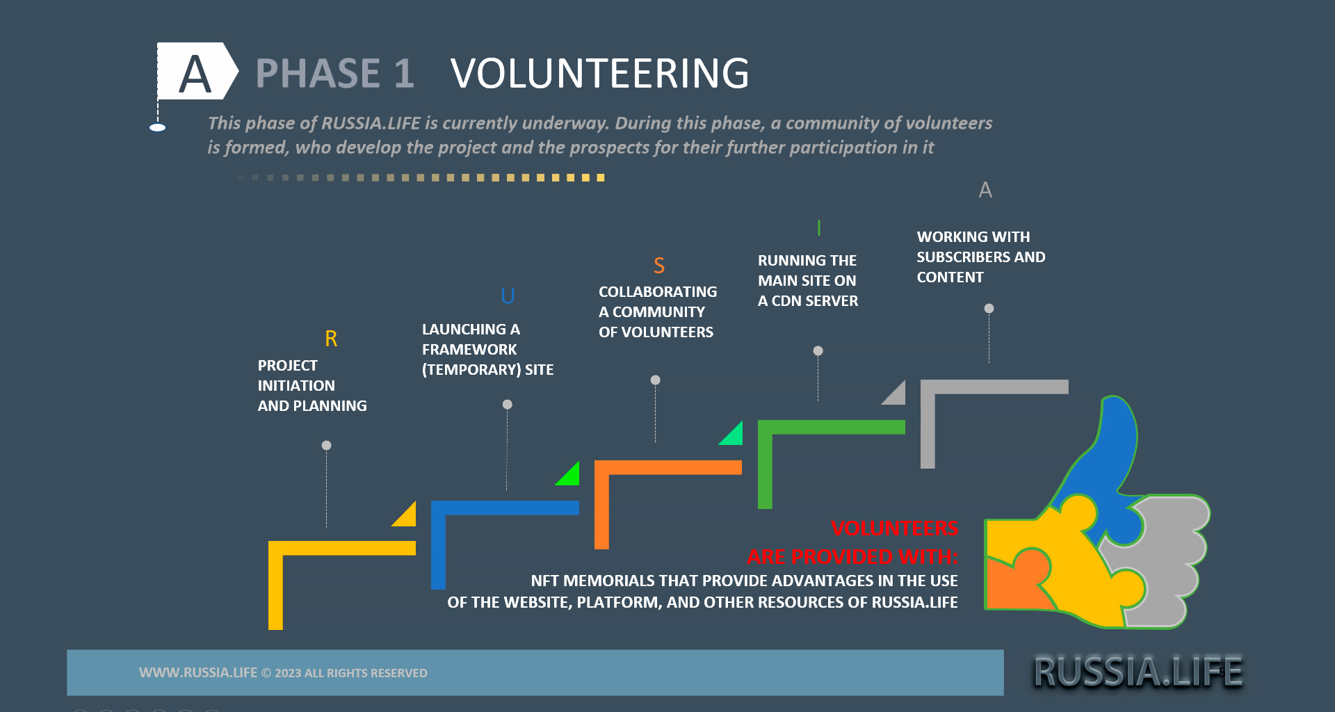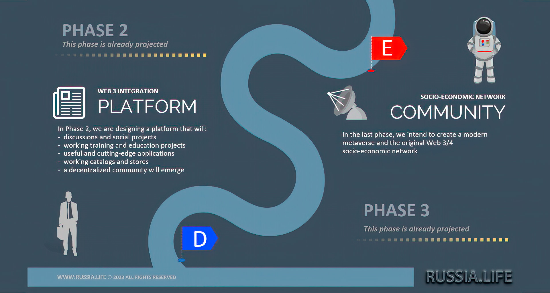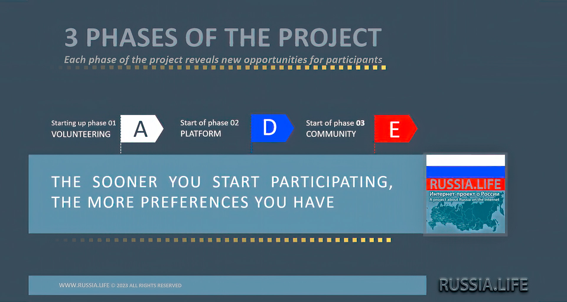 We invite you to join this exciting project as volunteers and partners to collectively build a future based on interaction, socio-economic growth, and the embodiment of diverse and inspiring ideas. RUSSIA.LIFE will evolve within the framework of the social-economic network WEB 4.0, where every participant will find a place for interaction, learning, and the realization of their ambitions.